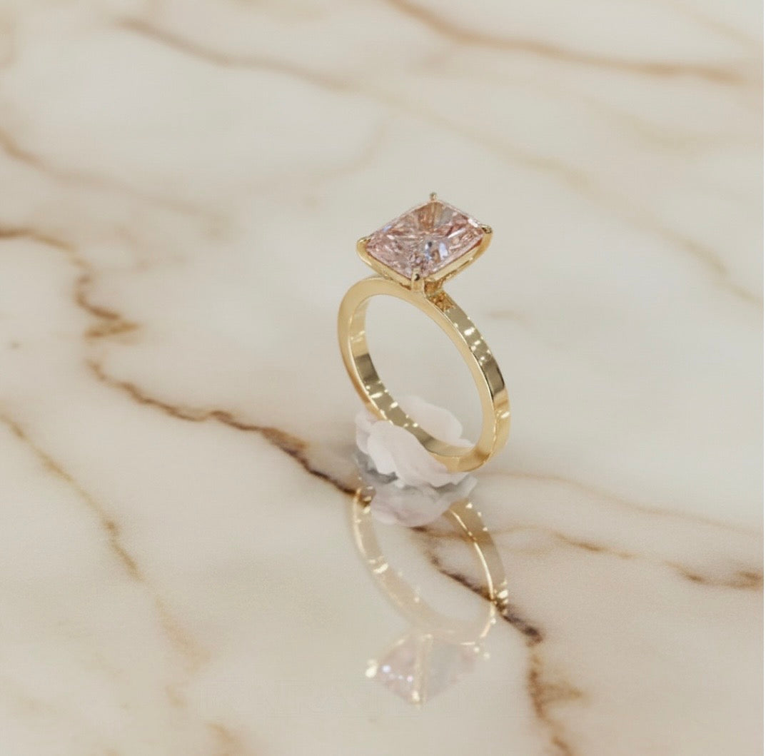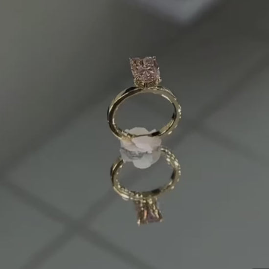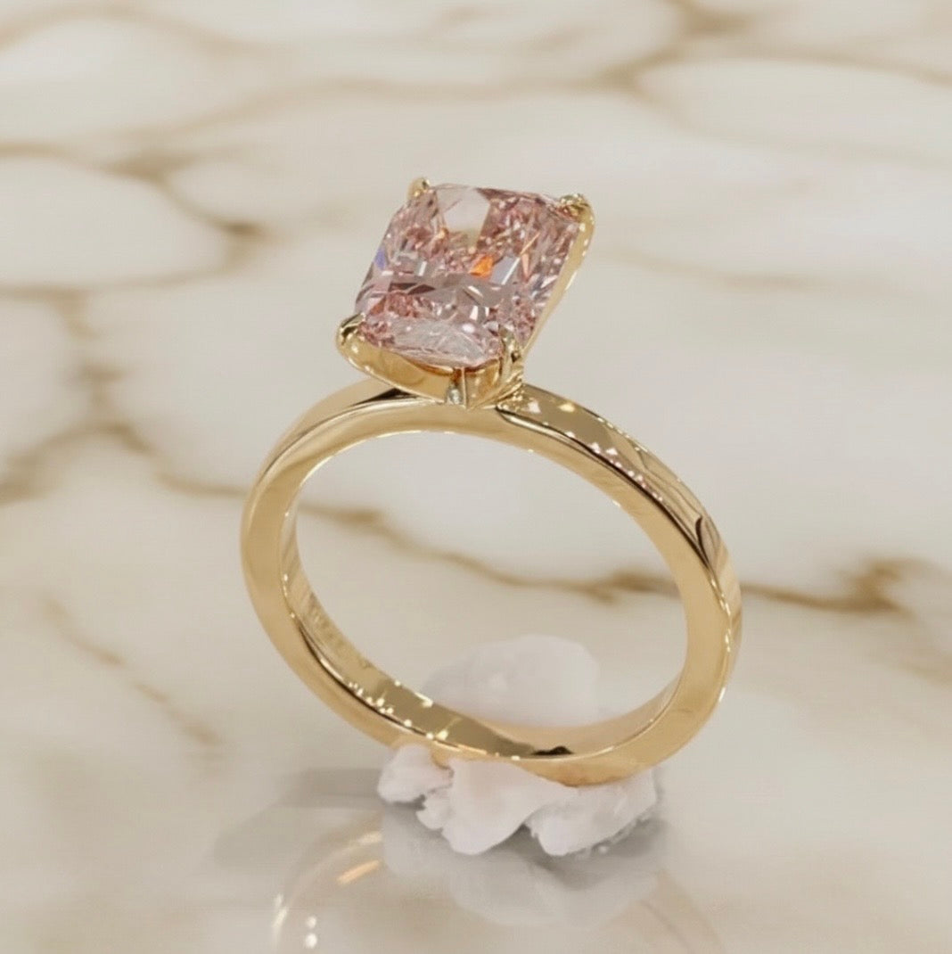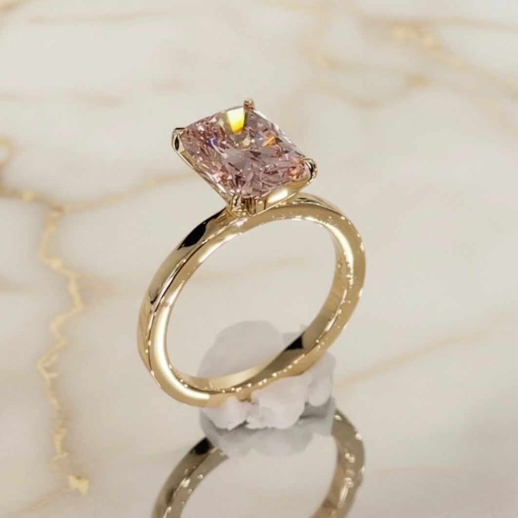 Diamond: Soft rose / blush pink elongated cushion cut (3ct pictured).