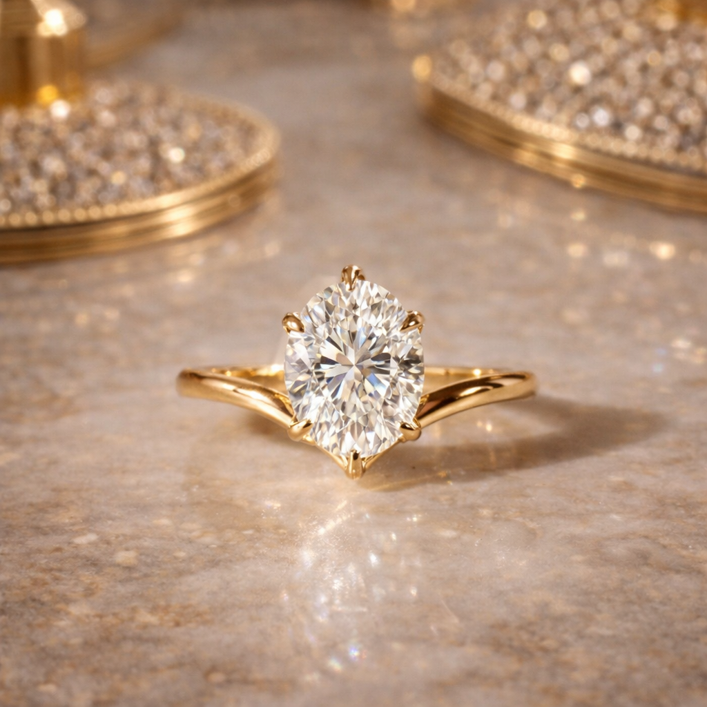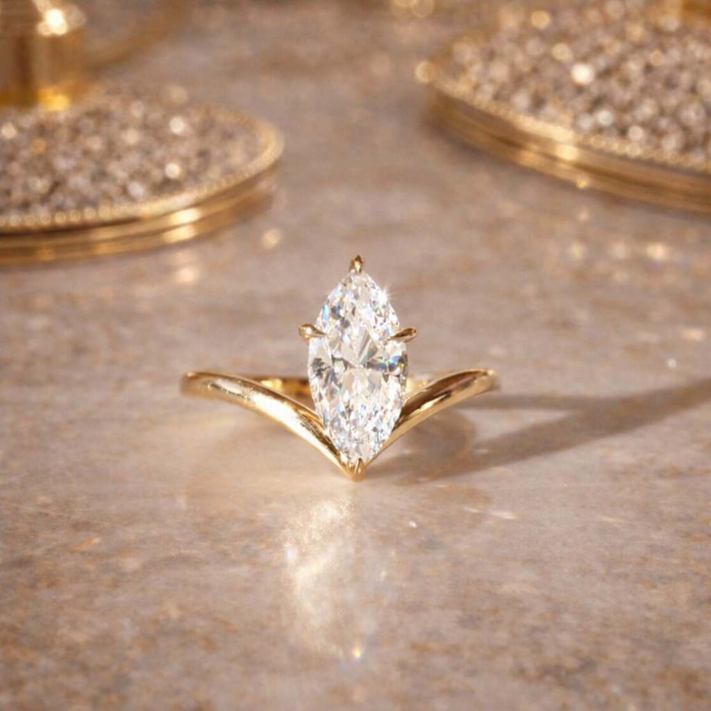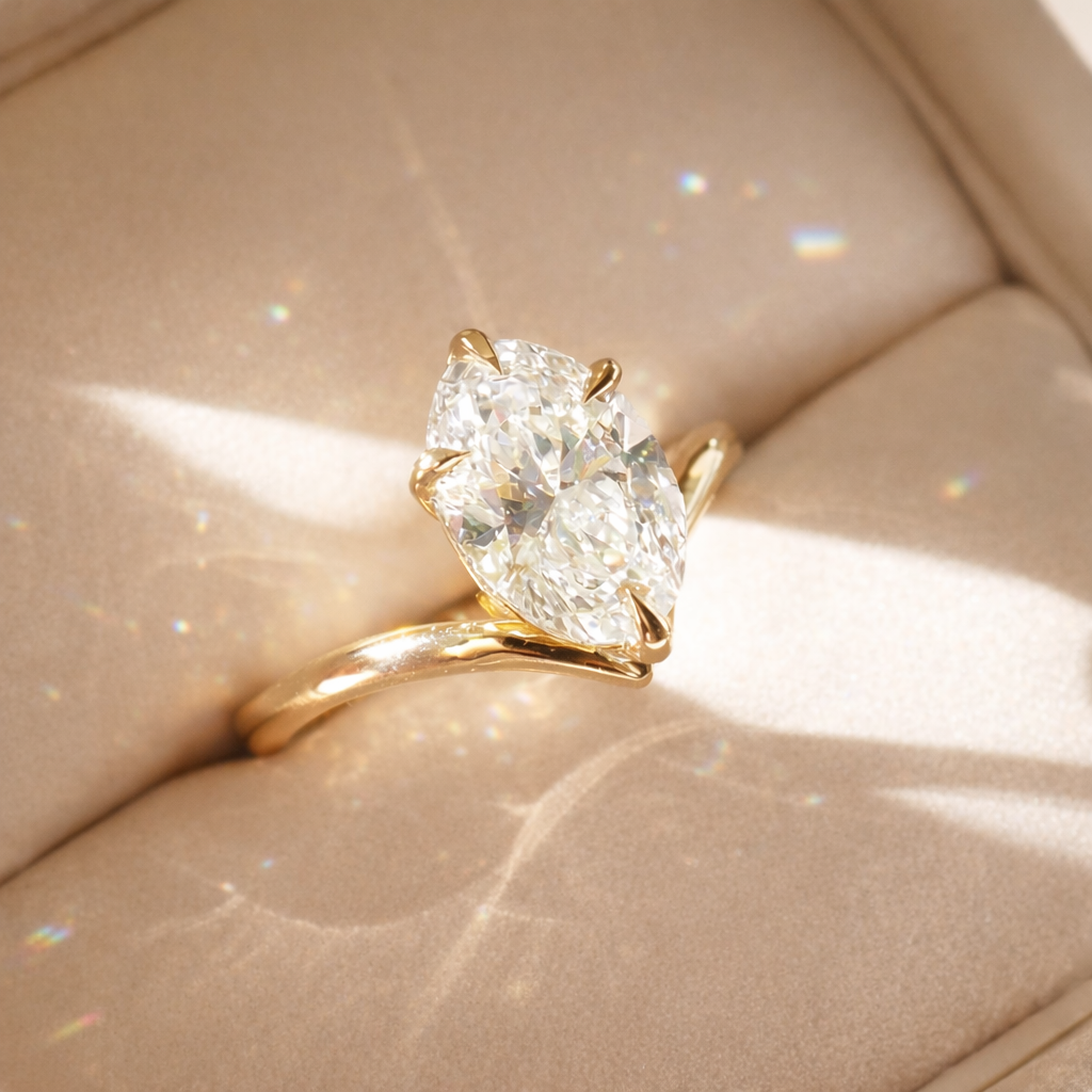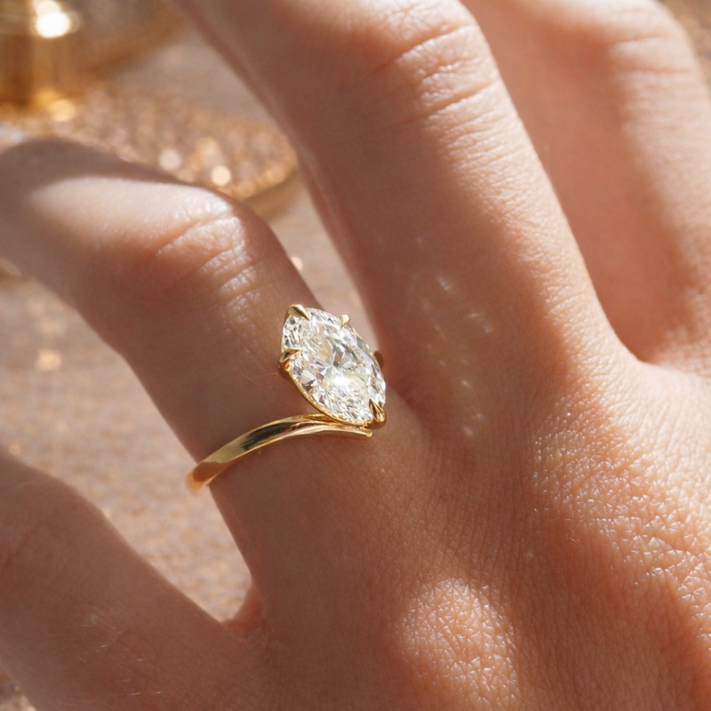 To achieve this look - we recommend the following diamond shapes: Oval, marquise, and pear.