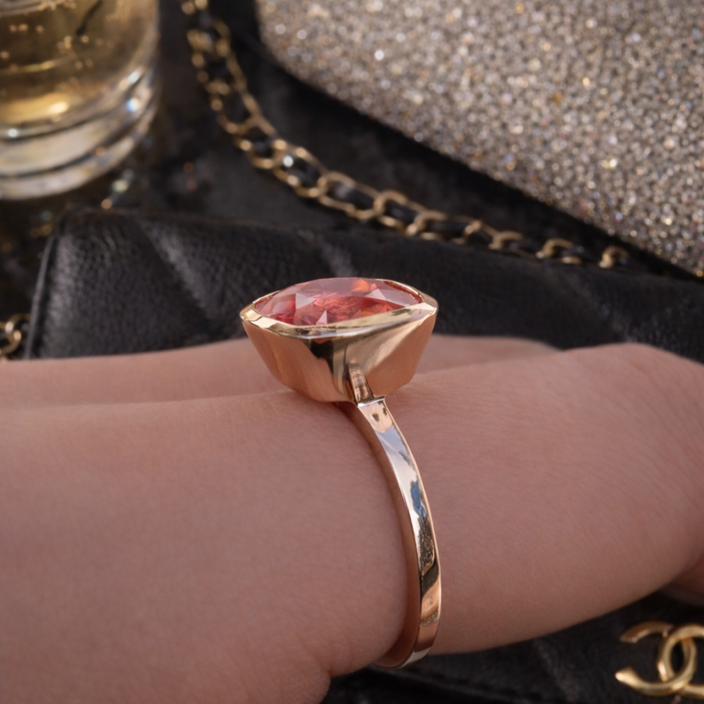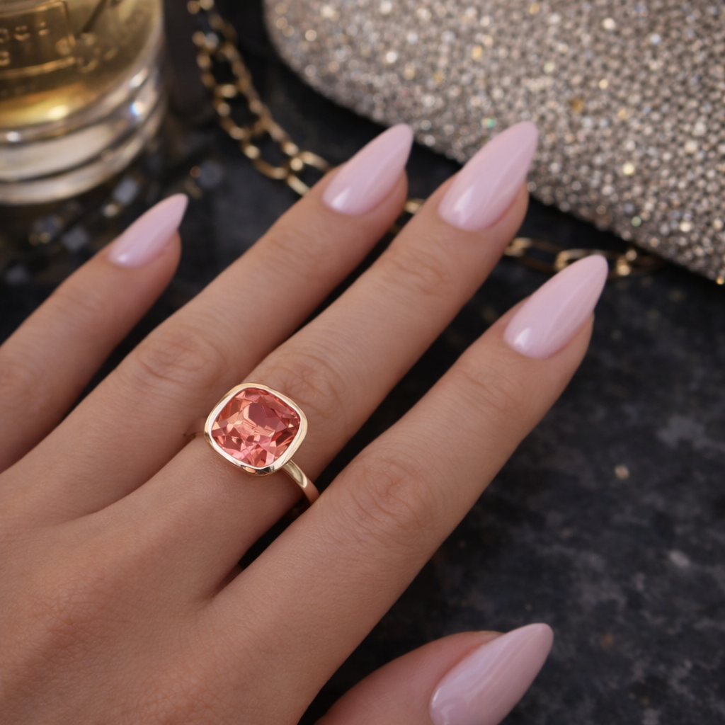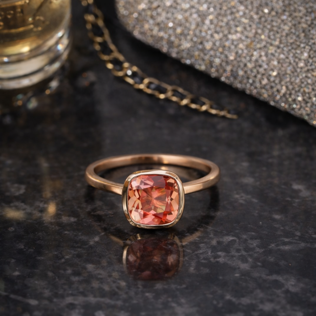 Band:Β Designed for a flawless, comfortable fit in any ring size, this statement solitaire ring is a celebration of warmth, individuality, and modern romance. At its centre sits a beautiful cushion cut lab-grown diamond in a glowing sunset pink hue, displaying soft peach and coral undertones that are enhanced by its elegant bezel setting. Set in a refined 18ct rose gold band, this piece is timeless yet distinctive and created for those who appreciate uniqueΒ craftsmanship, meaningful design, and a contemporary expression of beauty.