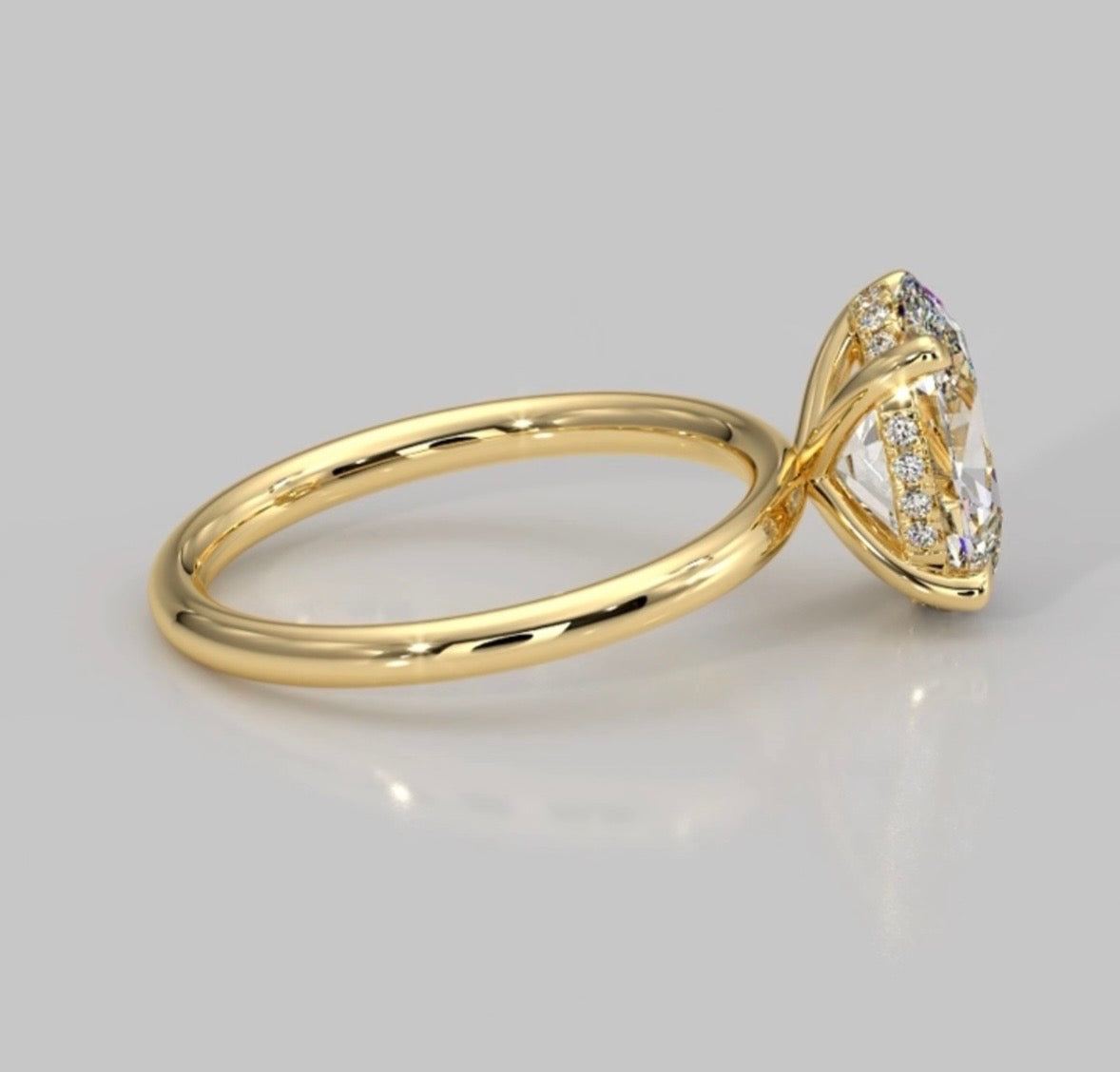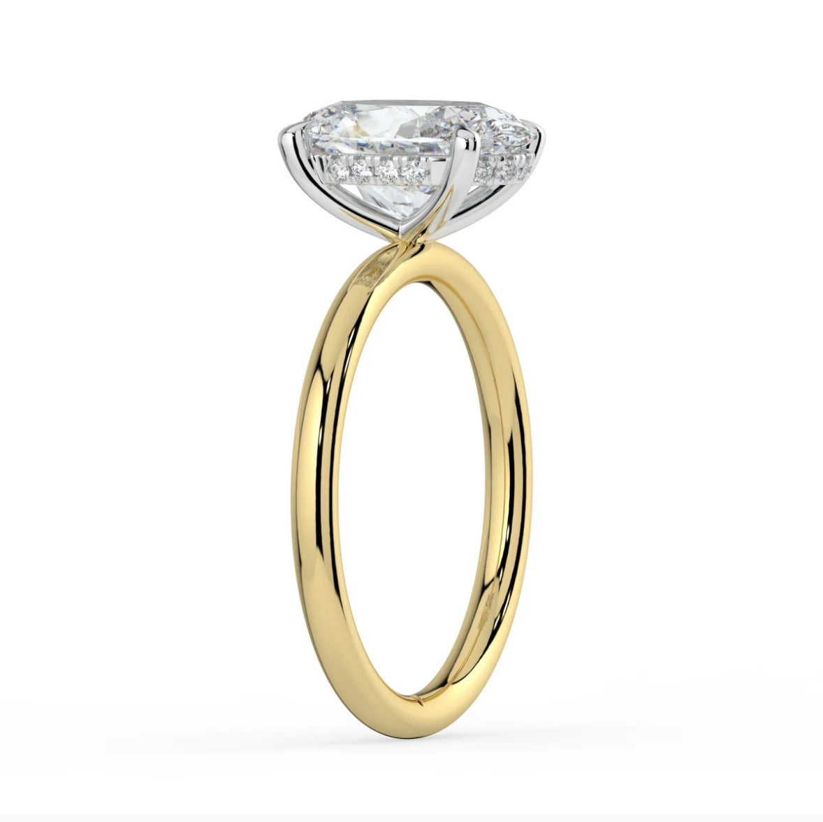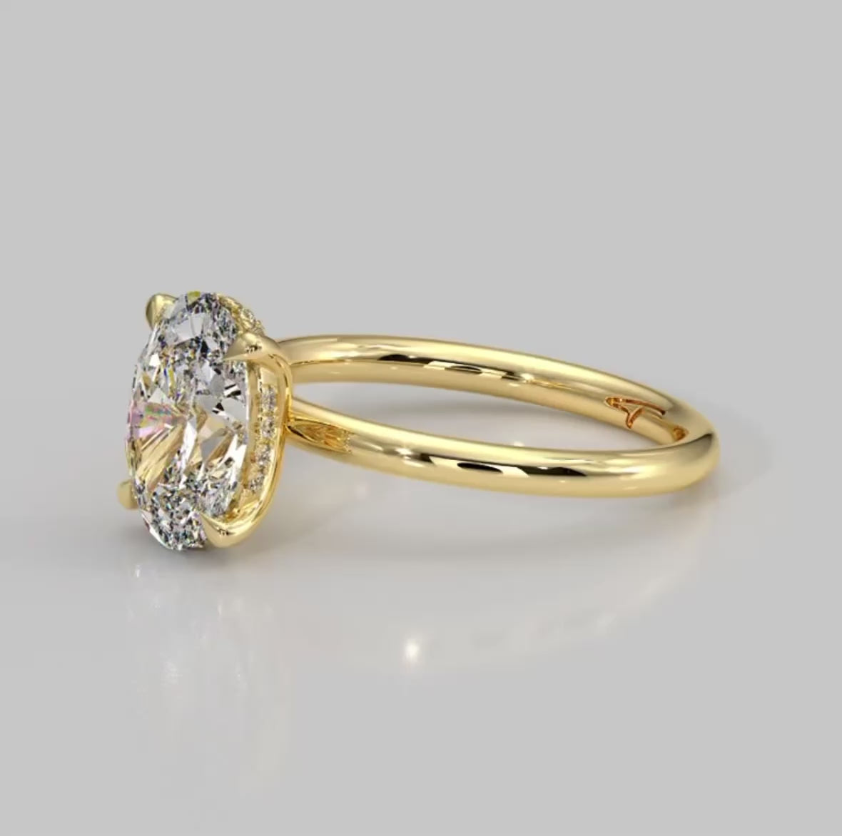 Band:Β Crafted to fit any ring size for the ideal, comfortable fit. This piece features an elevated solitaire style setting with a hidden halo, on an 18ct gold band delicately secured in a six-claw white gold mount for exceptional stability.Β