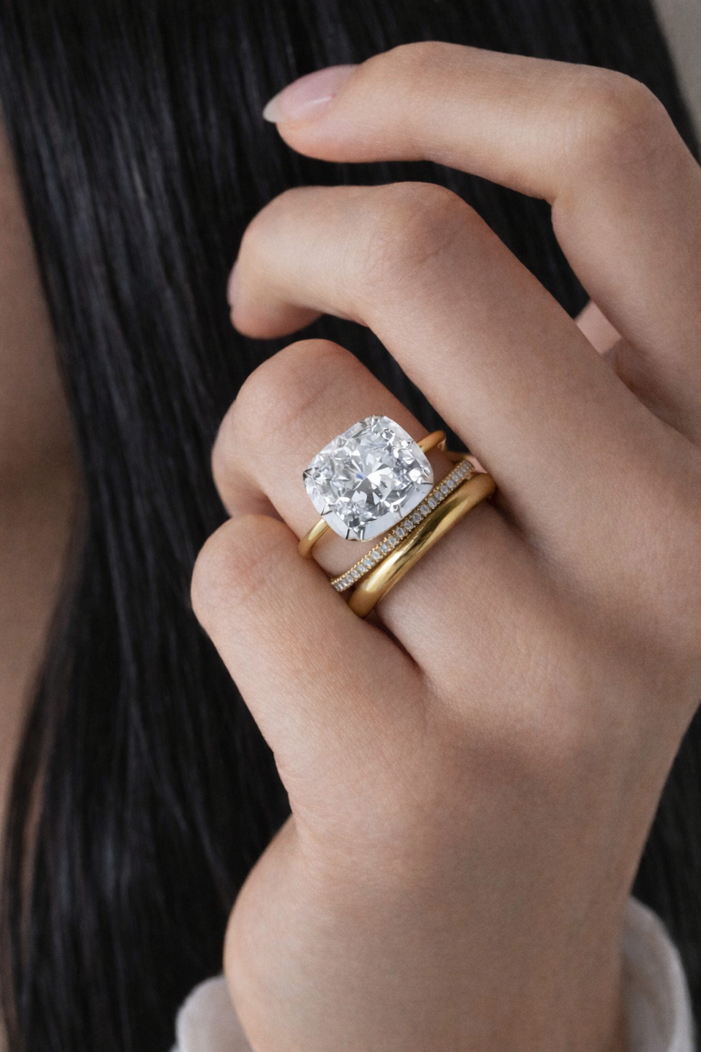 This striking ring celebrates the natural elegance of the cushionΒ cut, its elongated silhouette softly embraced by a refined bezel that enhances brilliance while lending a sense of quiet strength. The setting draws from Georgian design principles, reinterpreted with modern restraint to create a piece that feels both storied and distinctly personal.