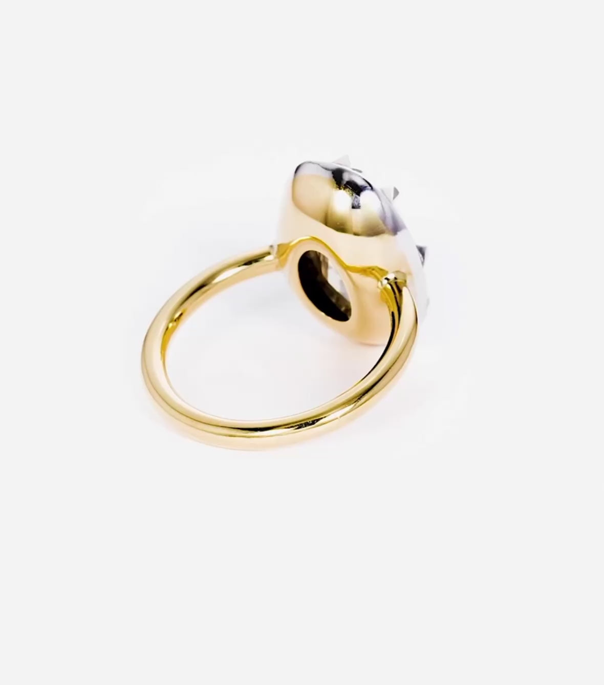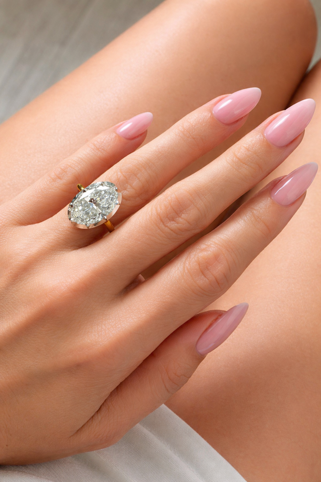 Crafted to sit gracefully on the hand, the collet frame allows light to move fluidly through the diamond, revealing depth, fire, and individuality from every angle. Uncomplicated yet deeply expressive, this is a ring for someone who values subtle drama, thoughtful design, and jewellery that feels uniquely their own rather than traditionally expected.