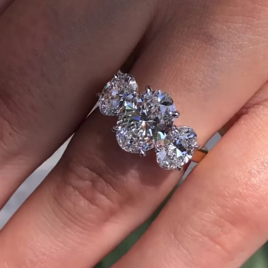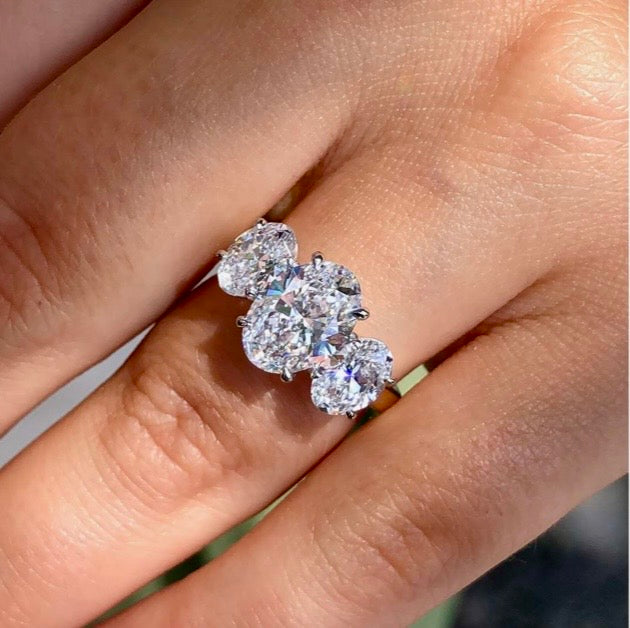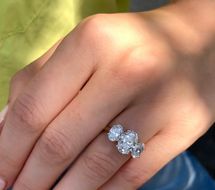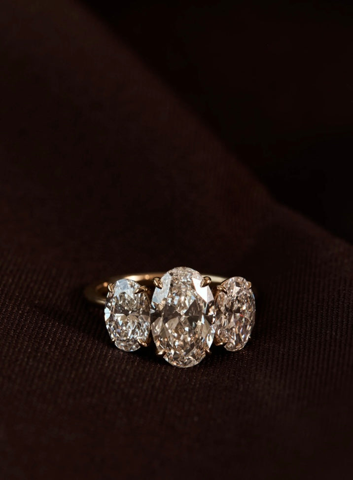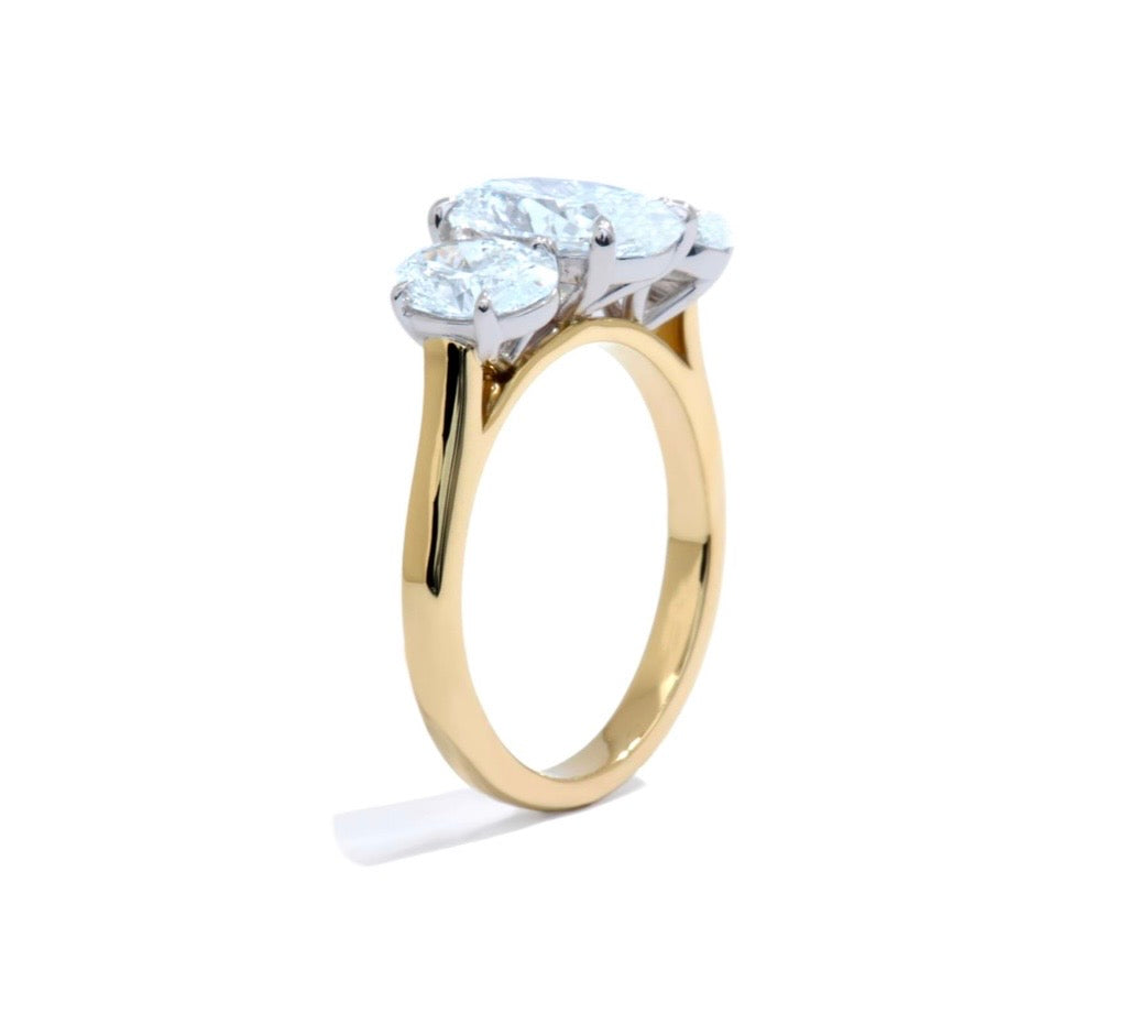 Band:Β Crafted to fit any ring size for the ideal, comfortable fit. This piece features an exquisite trio of oval diamonds set in a classic 18ct band. This particularΒ design symbolises your past, present, and future together with each diamond catching the light with breathtaking fire and sparkle. Crafted for those who appreciate understated luxury and enduring style.
