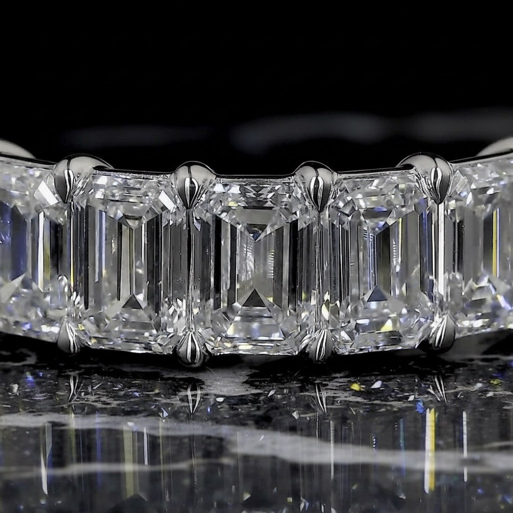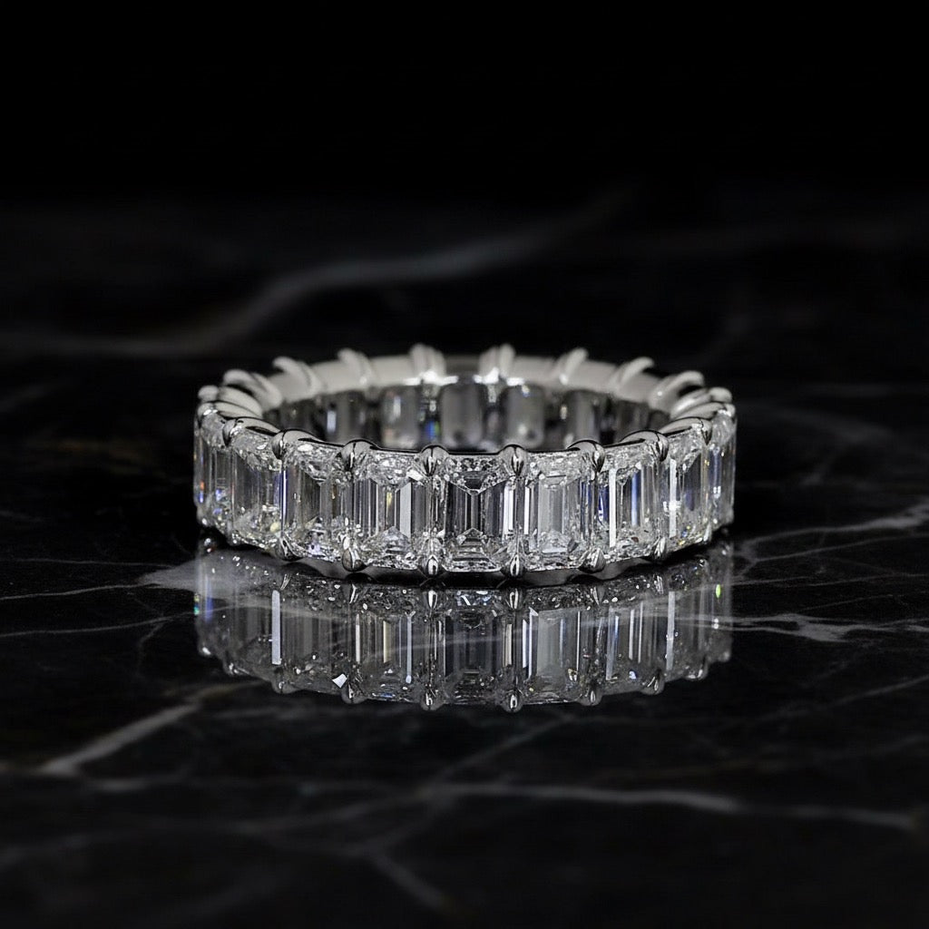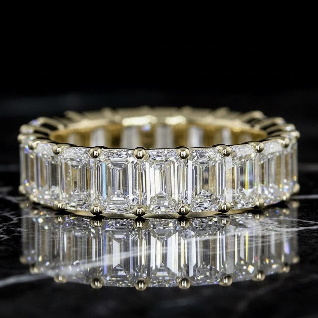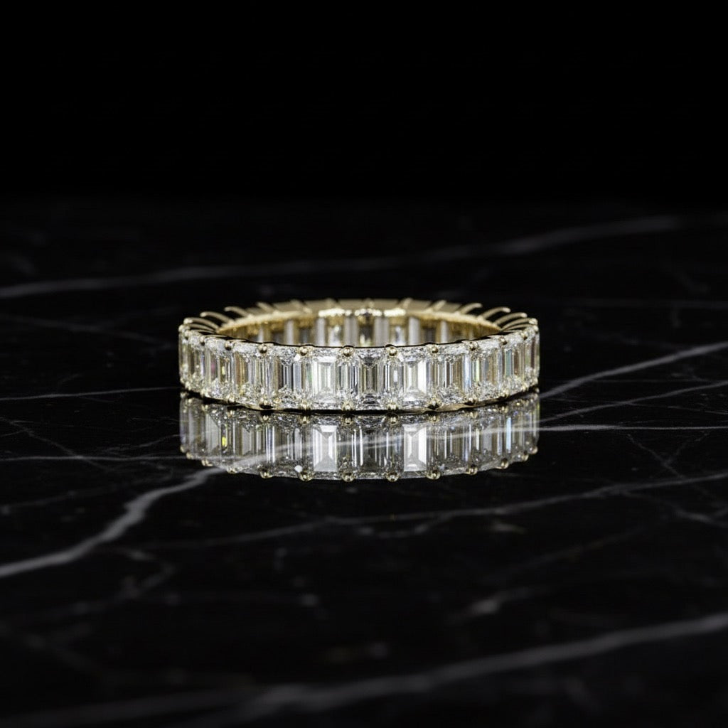 Offered in 14k gold, this exquisite piece showcases a continuous row of emerald-cut diamonds, perfectly set around the entire band for a seamless, luxurious look.