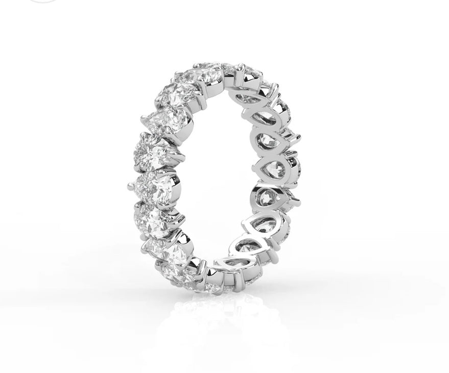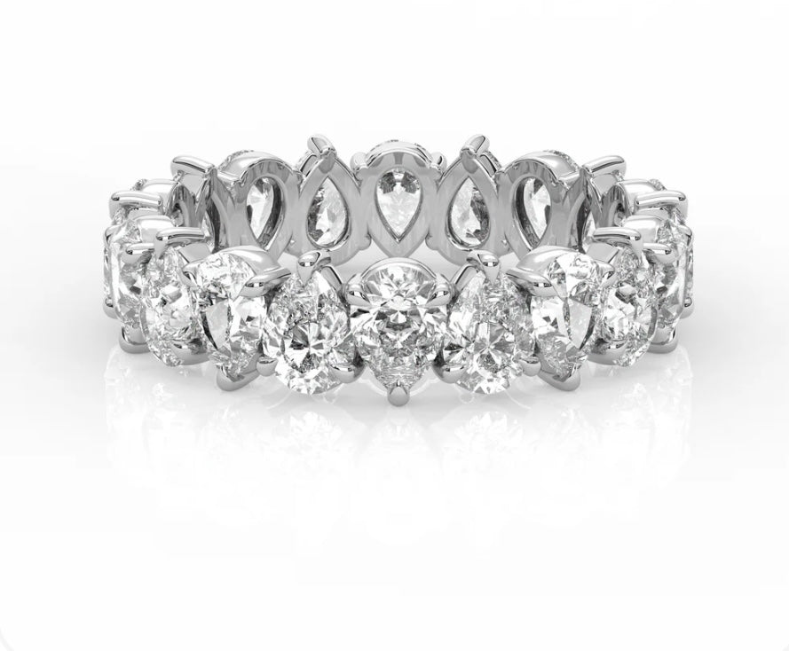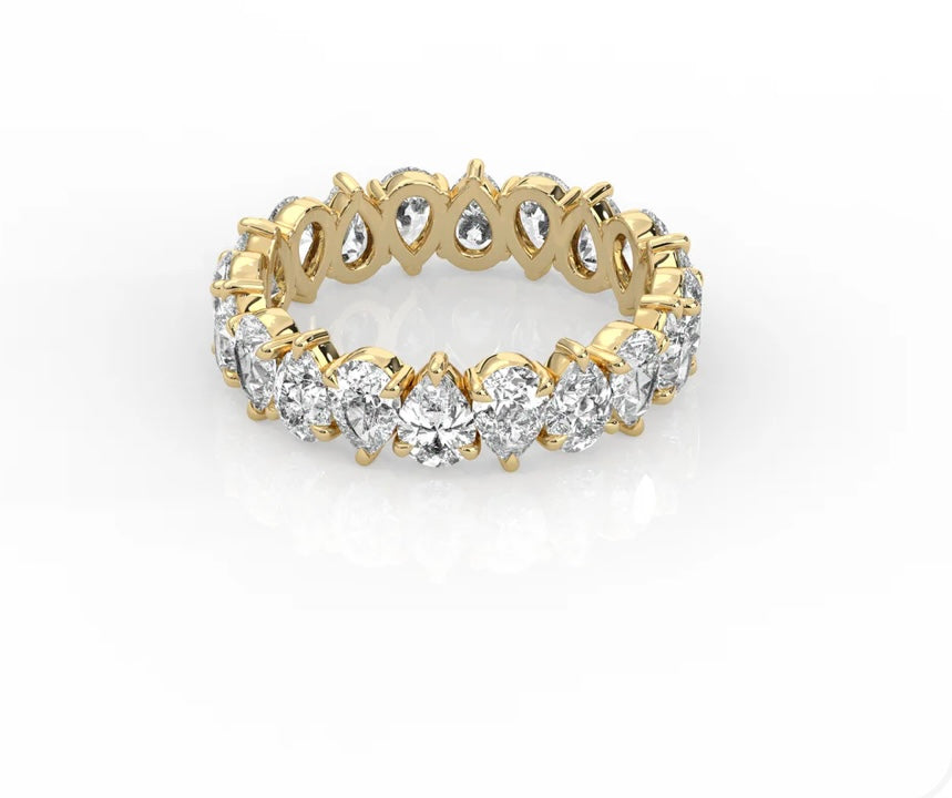 Offered in 14k gold, this exquisite piece showcases a continuous row of pear shape diamonds, perfectly set around the entire band for a seamless, luxurious look.