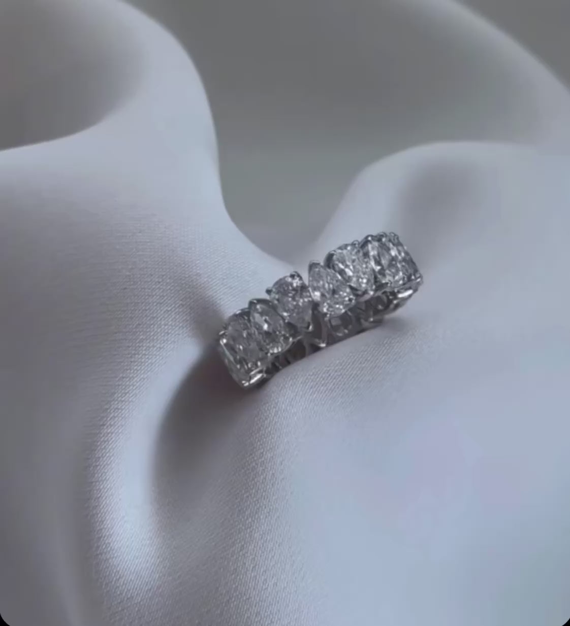 Band:Β To ensure the most comfortable fit, we suggest choosing a slightly larger size, as wider bands naturally sit more firmly on the finger. When worn as part of a ring stack, an eternity band may also feel more snug due to the added width.Β Please note that resizing this style of ring is possible, however it can be costly.