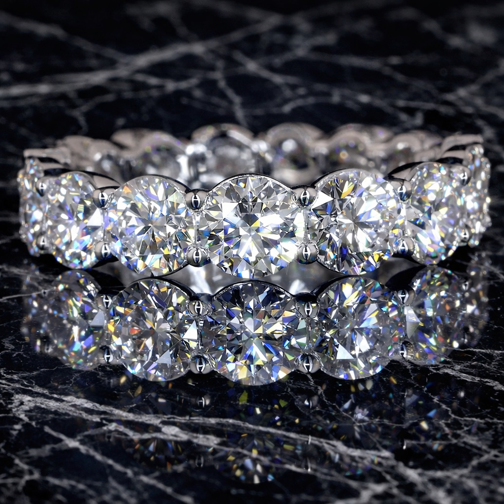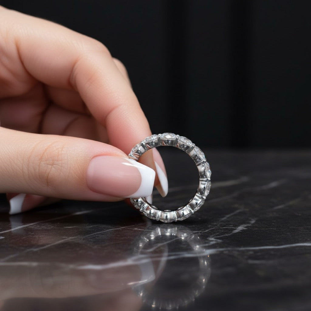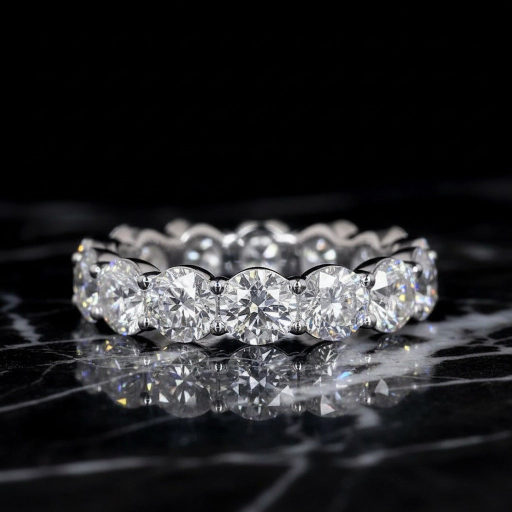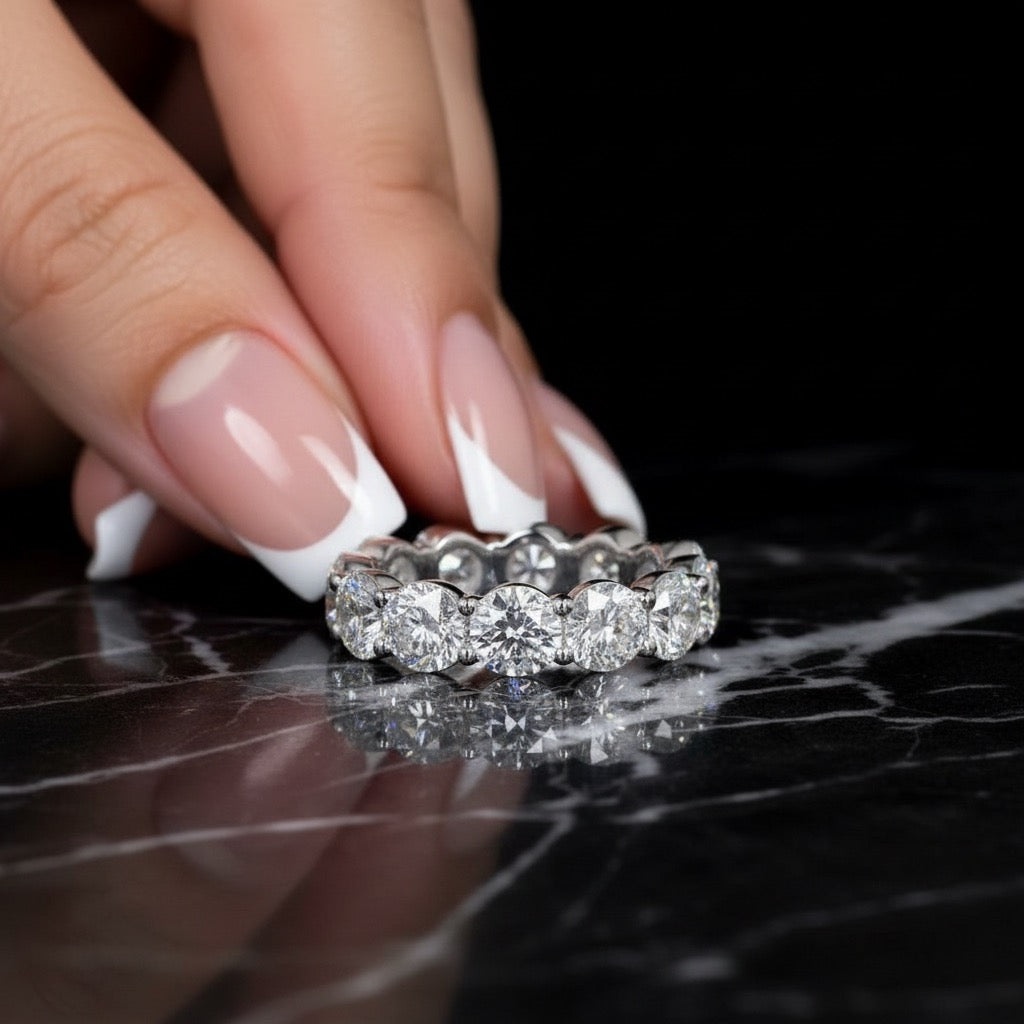 All diamonds used for the eternity rings are certified lab-grown diamonds, and all pieces are backed by a lifetime manufacturing warranty.