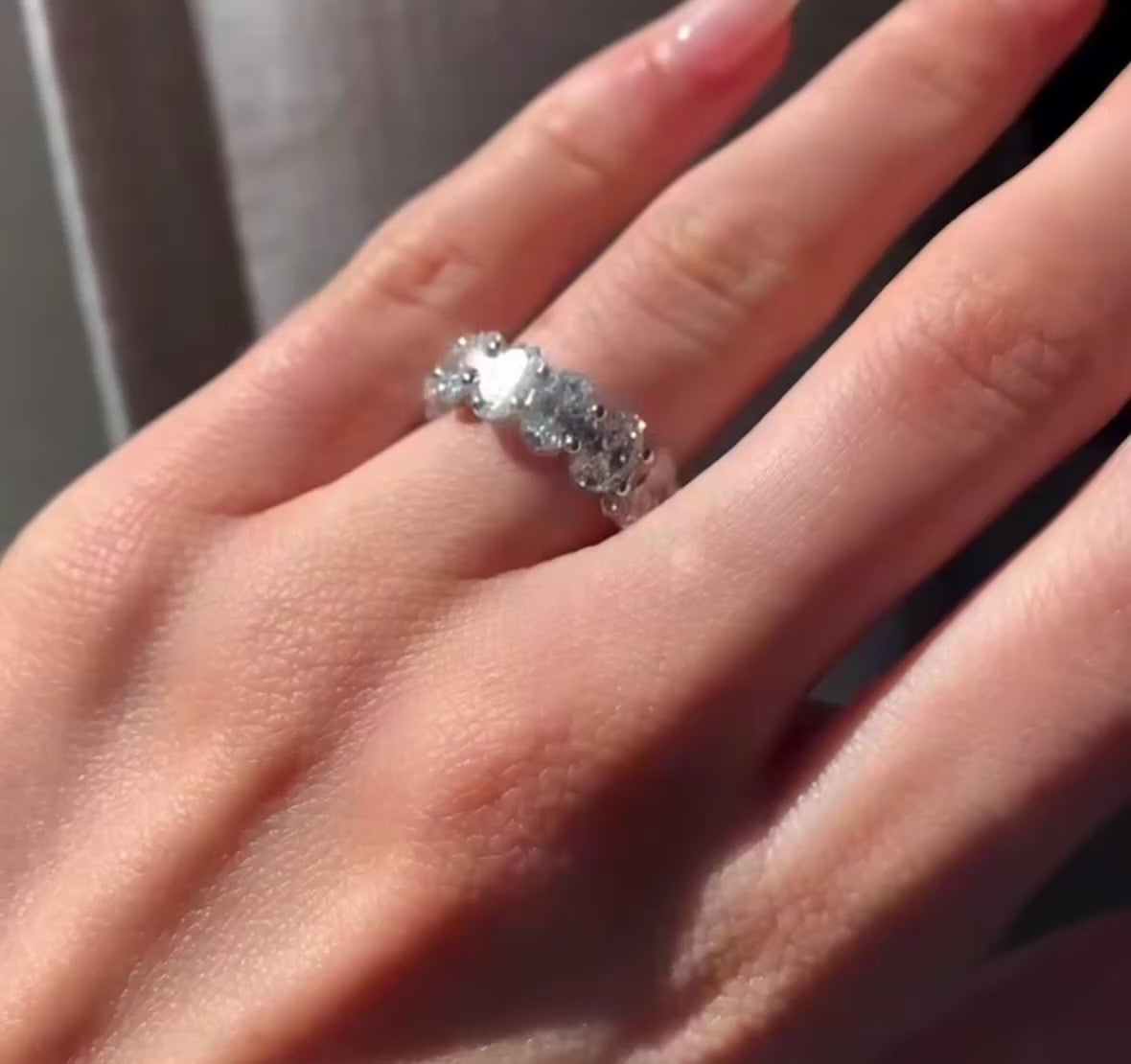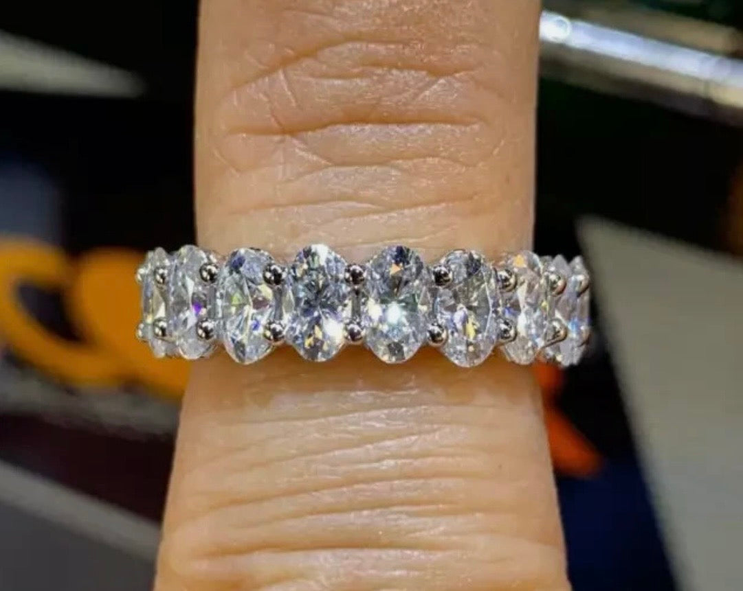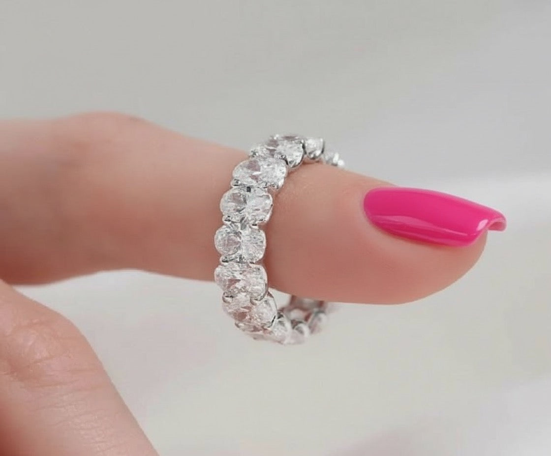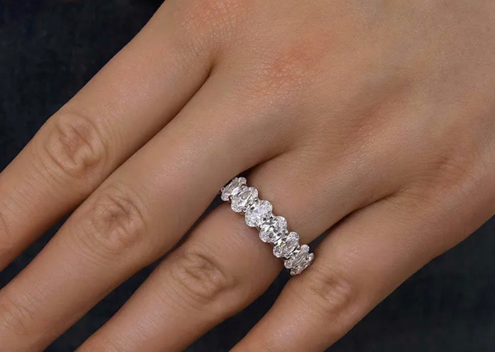 Band: Offered in 14k gold, this pieceΒ features a continuous row of oval-cut diamonds set seamlessly around the band, creating a soft, elongated silhouette that sparkles from every angle. The oval shape enhances brilliance while offering a refined, graceful look that feels both classic and modern. We invite you to reach out to us if you would like pricing for 10k or 18k gold.