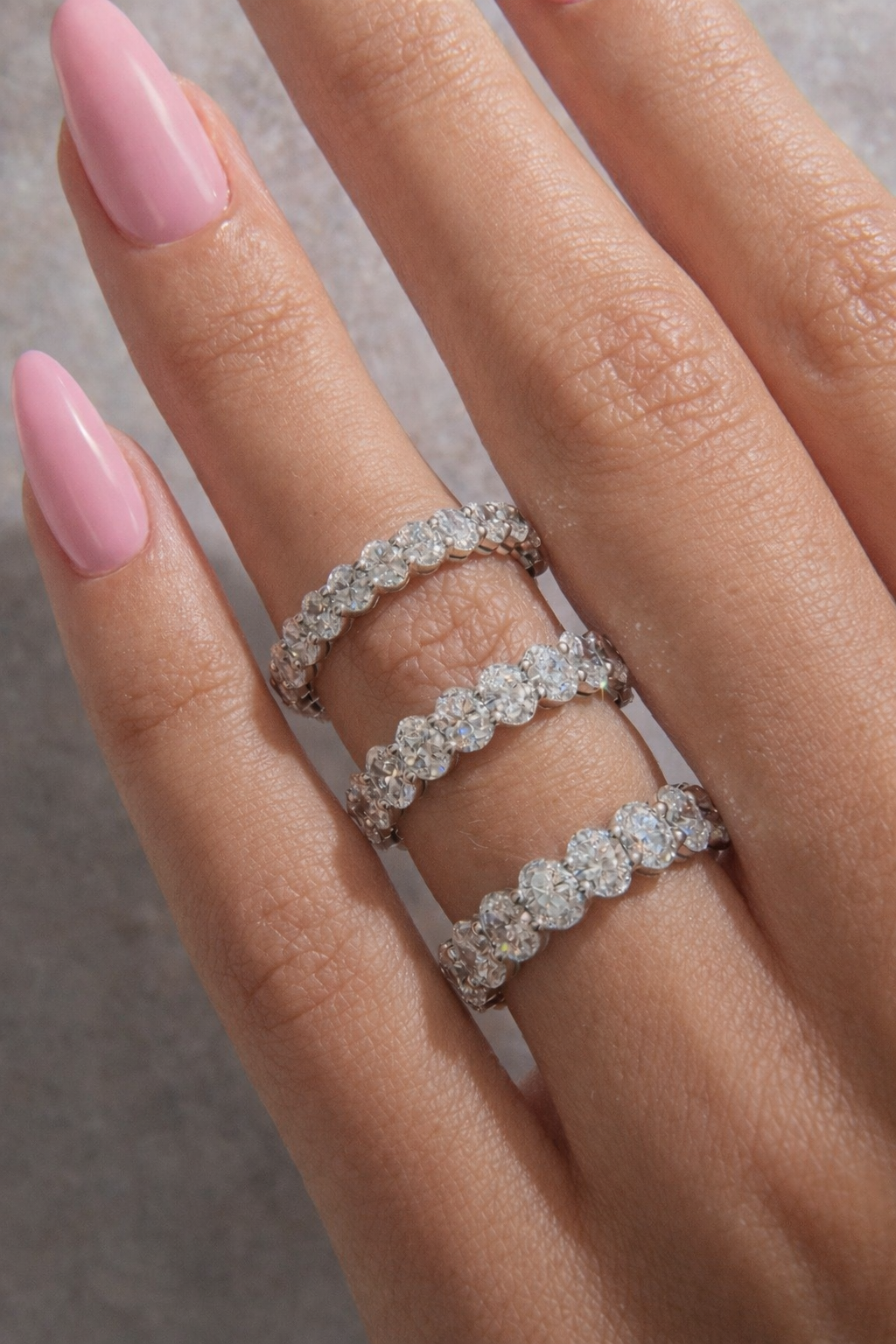 To ensure the most comfortable fit, we suggest choosing a slightly larger size, as wider bands naturally sit more firmly on the finger. When worn as part of a ring stack, an eternity band may also feel more snug due to the added width.Β Please note that resizing this style of ring is possible, however it can be costly.