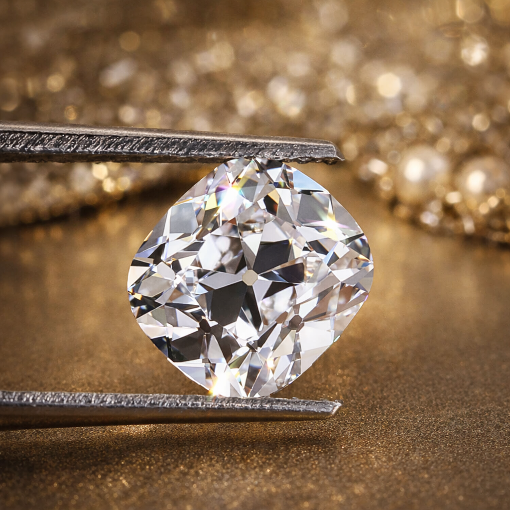 Antique / Old mine cut cushion diamonds (also called candlelight diamonds) are celebrated for their softly squared shape, rounded edges, and distinctive hand-cut character that reflects the artistry of a bygone era. Known for their broader facets and higher crown, these diamonds emit a rich, candle-like glow rather than a sharp, modern brilliance, giving them a depth and warmth that feels truly romantic. Each stone carries subtle individuality, enhancing its vintage allure and old-world charm. The old mine cut pairs beautifully with both classic and contemporary settings, adding character without overpowering the design. This cut is ideal for those drawn to heritage, authenticity, and understated luxury - perfect for anyone who values timeless beauty with a soulful, historic elegance.
