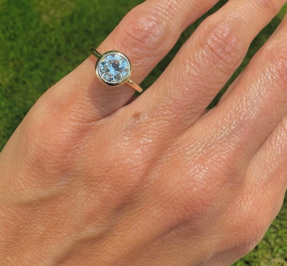 Diamond: 1.5ct diamond bezel set, offered in a variety of shapes